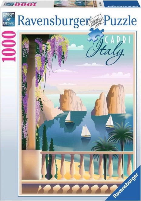 Nyd puslespil af høj kvalitet med RAVENSBURGER “Postkort fra Capri” med 1000 brikker. Præcist udstansede brikker, refleksfri, silkeblød papiroverflade og et malerisk Capri-motiv giver både afslapning og udfordring for alle puslespilsentusiaster.