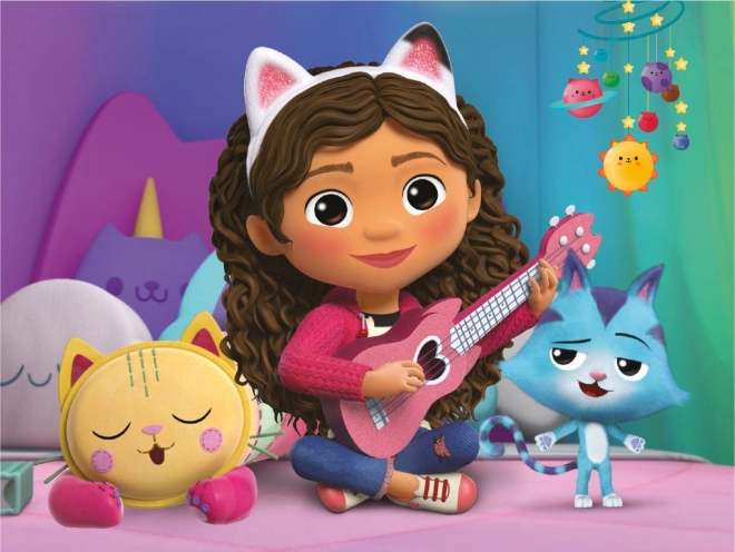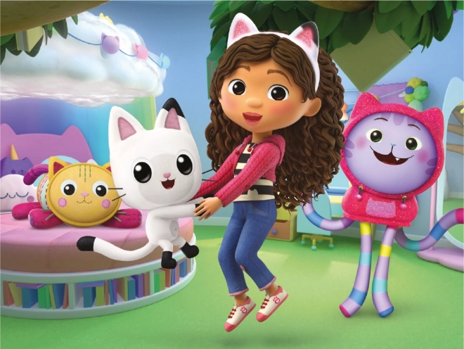 Slut dig til Gabi og hendes katteven i det magiske hus. Dette sæt med 12 træklodser er ideelt til børn fra 3 år, som ikke blot forbedrer deres motoriske færdigheder, men også udvikler fantasien.