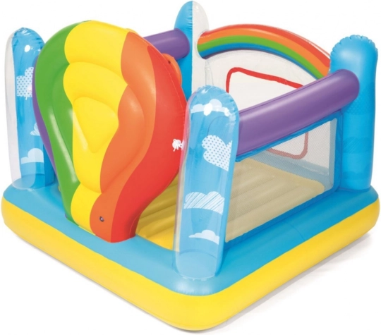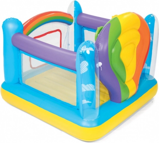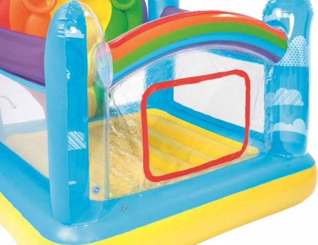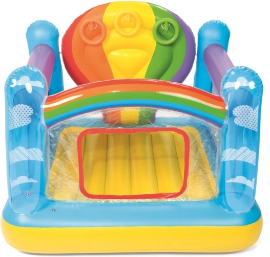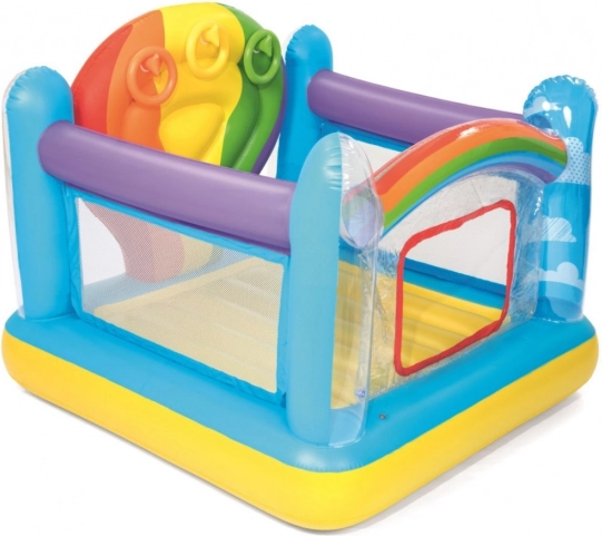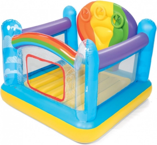 | - robuste, farvede sidevægge, - legepladsen giver dit barn mulighed for at hoppe og springe på en holdbar oppustelig pude, - sikkerhedsventiler, - slidstærk, testet vinyl, - farverigt, interaktivt hoppeområde, - vindue for nem indgang, - kasteringe på kroge i sidevæggene, - tre oppustelige ringe medfølger i sættet. | |