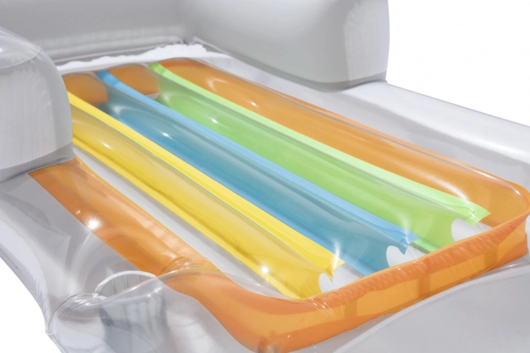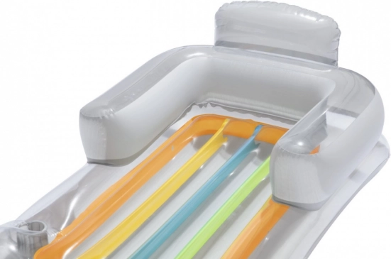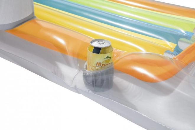 Denne oppustelige Bestway-liggestol er den ideelle ledsager til dage ved vandet. Takket være sin skillevægskonstruktion og to luftkamre giver den fremragende stabilitet på vandet. Den integrerede plads til drikkevarer sikrer, at du altid har en forfriskning lige ved hånden.