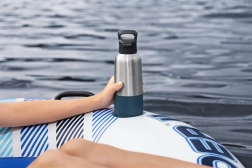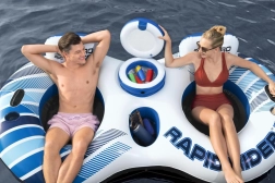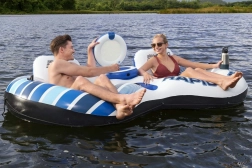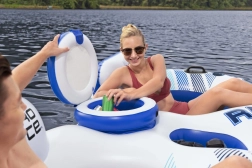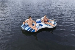 Den oppustelige ø er ideel til sommerafslapning på vandets overflade. Den er lavet af holdbart materiale, der sikrer lang levetid og nem håndtering. Med ryglæn og to drikkevareholdere kan du nyde komforten som på en sofa! Og alt dette mens dine drikkevarer holdes i en konstant temperatur, takket være det indbyggede køleskab.