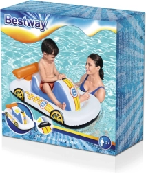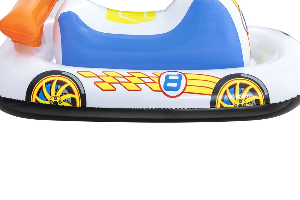 Giv børnene sikker vandleg med en let og kompakt oppustelig båd formet som en racerracer. Den farverige grafik, det komfortable støttende sæde og den oppustelige bund sikrer komfort og stabilitet, mens de integrerede håndtag giver tryghed under leg.