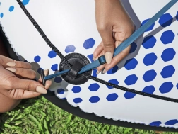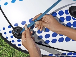 For sikker og nem brug er ringen udstyret med en sikkerhedsventil mod luftlækage og det smarte CLASP 'N GO-system til sammenkobling med en anden ring. I pakken finder du også en reparationslap til uforudsete småskader.
