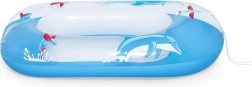 Dette oppustelige båd med et muntert delfinmotiv inviterer til langvarig sjov i vandet. Ideel til brug i poolen, ved havet eller søen. Manøvrering er nemt takket være det forreste reb, der øger komforten under brugen.