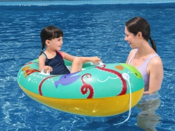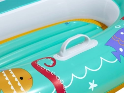 Den oppustelige børnebåd med mål 119 x 79 cm er let, bærbar og passer nemt i enhver bagage. Lavet af kvalitetsvinyl og udstyret med to sikkerhedsventiler, der forhindrer luftlækage. Blød oppustelig bund og to luftkamre giver maksimal komfort og stabilitet.
