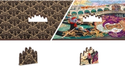 Træpuslespillet WOODEN CITY Venetiansk karneval 2-i-1 byder på et smukt motiv med atmosfæren fra VENEDIG og en unik læggeoplevelse. Den dobbeltsidede udførelse gør det muligt at lægge enten efter billedet eller på bagsiden efter et gentagende mønster, hvilket øger sværhedsgraden og forlænger fornøjelsen. Takket være præcis laserbearbejdning er kanterne glatte, og brikkerne passer perfekt.