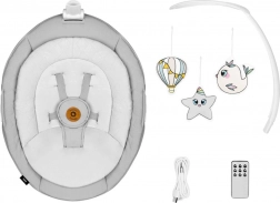 Gyngen tilbyder 6 bevægelsestilstande og en automatisk detektor, der aktiverer vuggen og musik. Den kan styres via touchpanel eller medfølgende fjernbetjening.
