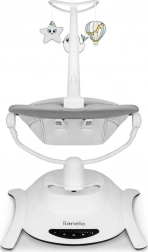 Den tilbyder 6 forskellige bevægelsestilstande, hvoraf én er unik og skifter hvert 16. sekund. Automatisk bevægelsesdetektor aktiverer vuggen og beroligende musik med 12 melodier, der kan styres via touchpanel eller fjernbetjening.