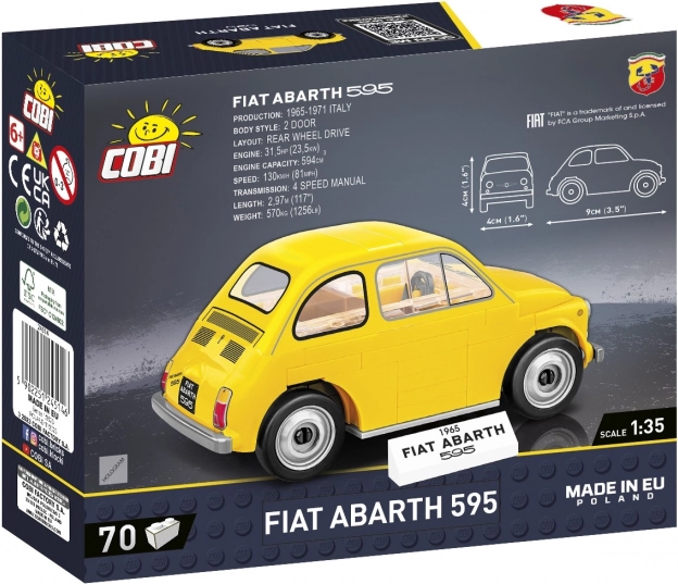 COBI byggesæt Fiat ABARTH 595 i skala 1:35. 70 dele, holdbare tryk, roterende hjul, navneskilt. Perfekt til leg og samling.