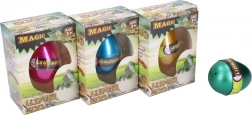 Disse fantastiske æg gemmer på en hemmelighed – en magisk voksende øgle! Læg blot ægget i vand og se det langsomt udklække og vokse til utrolige størrelser. Der er fire farvevarianter tilgængelige: blå, gylden, grøn og lilla, som giver variation og spænding hver gang man åbner dem.