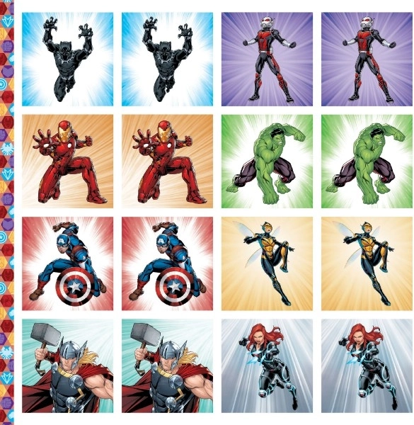 Oplev MARVEL-superheltenes univers med et vendespil i et praktisk hæfte. Børnene får en spændende leg, hvor de træner hukommelse, koncentration og opmærksomhed. Efter spillet kan alle kort lægges i en papæske, som børnene selv kan klippe ud og samle.