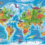 Farverig illustration af forhistoriens verden med dinosaurer på tværs af kontinenterne understøtter legende læring og stimulerer børns nysgerrighed.