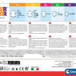 SuperColor-serien fra CLEMENTONI er kendt for topkvalitet og intense farver, der modstår falmning. Børn træner finmotorik, logisk tænkning og tålmodighed, mens de lærer om forskellige dinosaurarter og kontinenter.