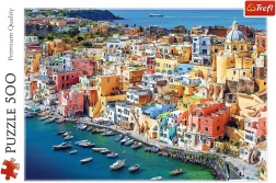 Dette fantastiske 500-brikkers puslespil viser den maleriske kystby Procida med sine farverige huse og små bådhavne. Det færdige billede måler 480x340 mm, ideelt til udstilling på væggen eller et konsolbord.