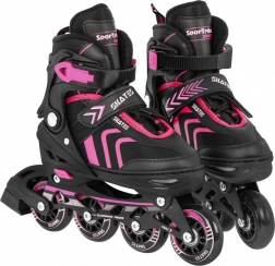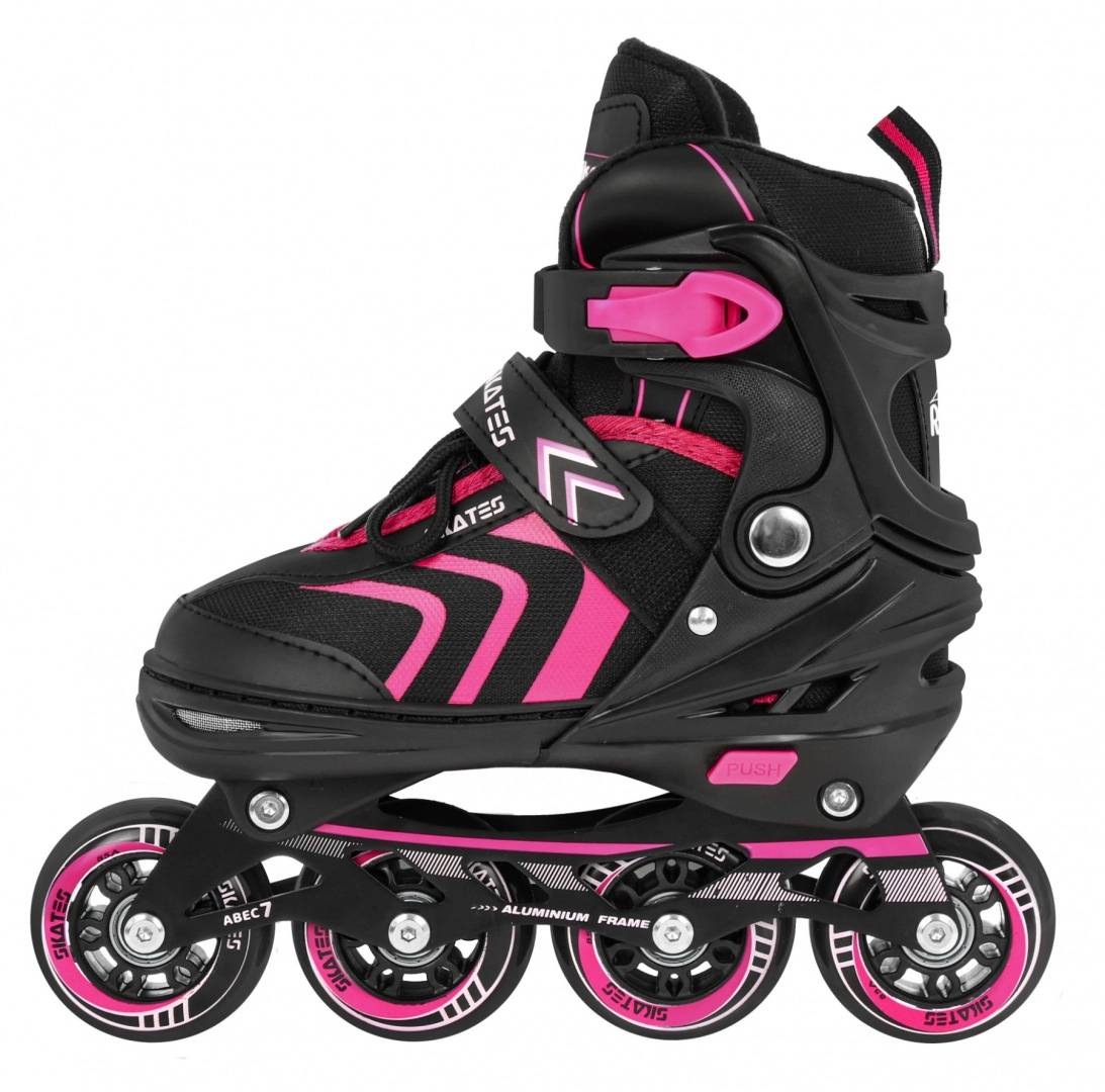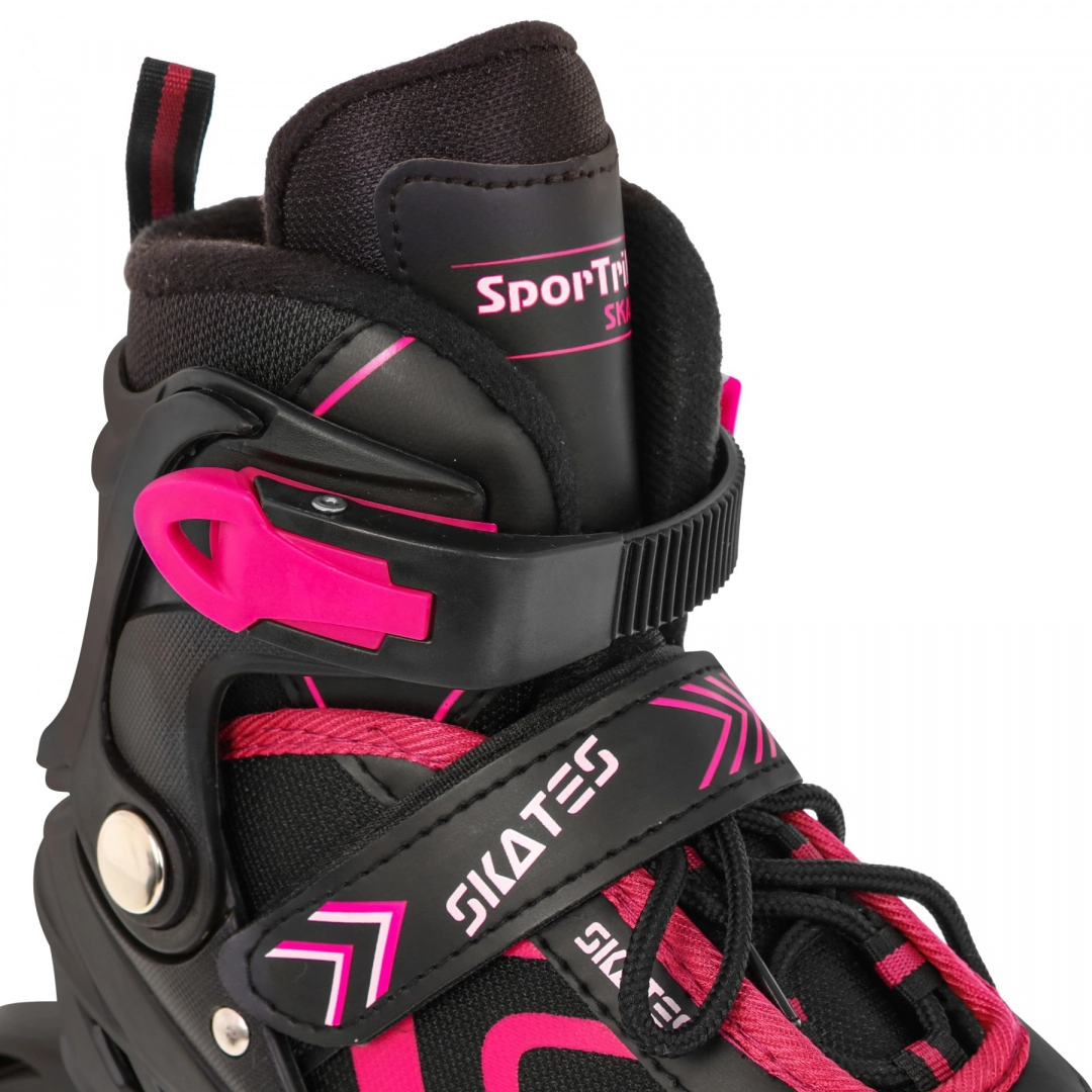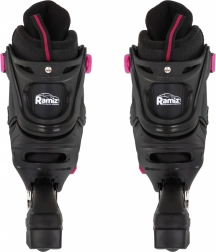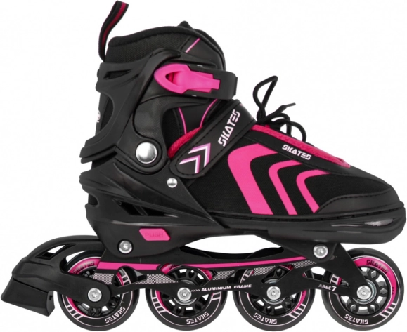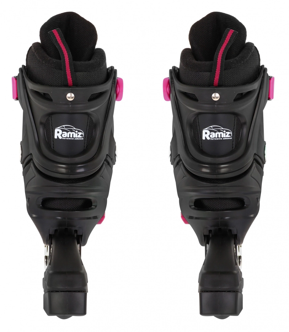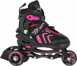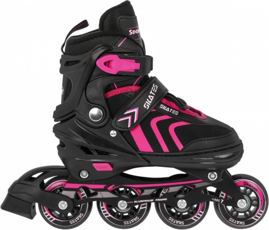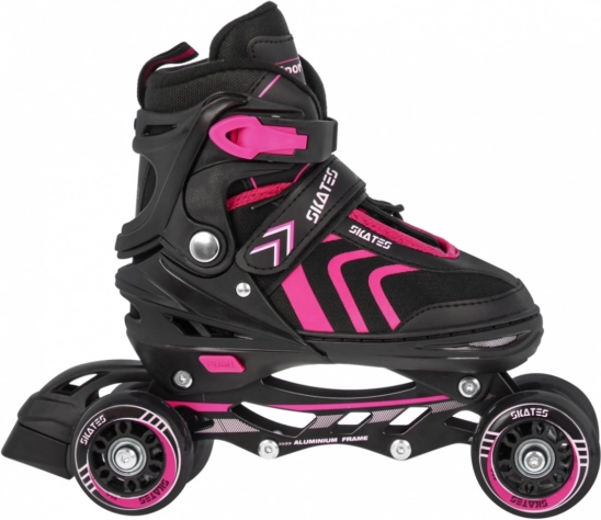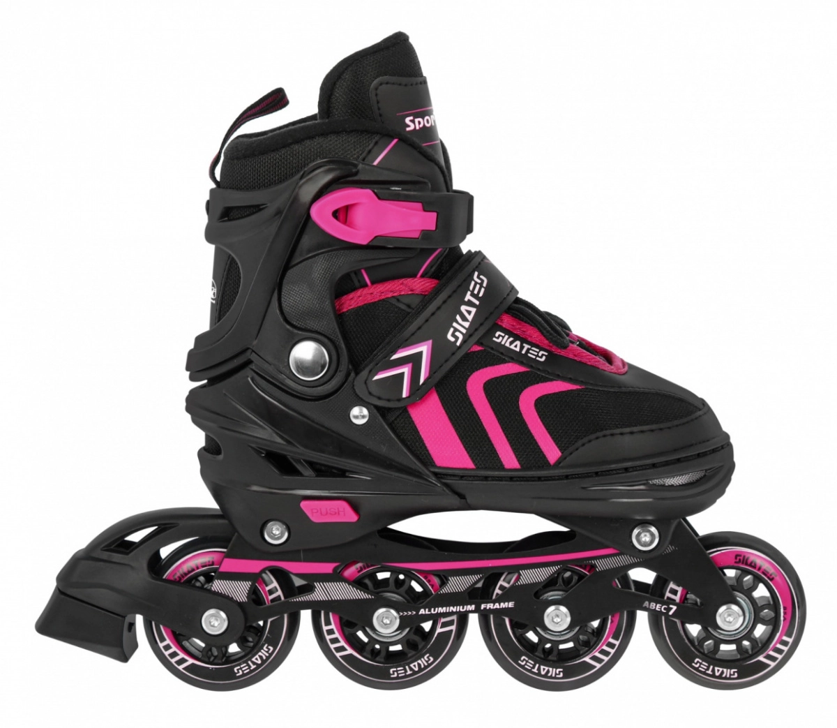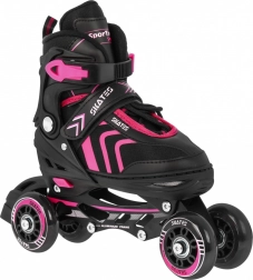Universal børnesæt 4-i-1 kombinerer inline-skøjter, trekhjulsskøjter og isskøjter i én. Takket være 5-trins størrelsesjustering 29–33, behagelig polstring af blødt EVA-skum, ventilation og sikker lukning med snørebånd + velcrorem + spænde giver de sikkerhed og komfort. Aluminiumsramme, ABEC 7-lejer og PU-hjul 64 mm (85A) sikrer en glidende kørsel, mens et rustfrit stålblad giver tryghed på isen.