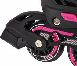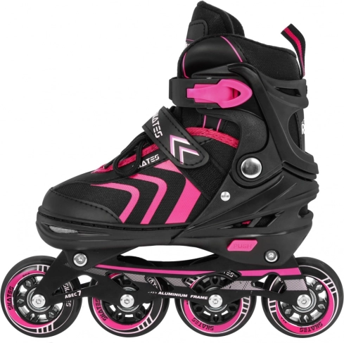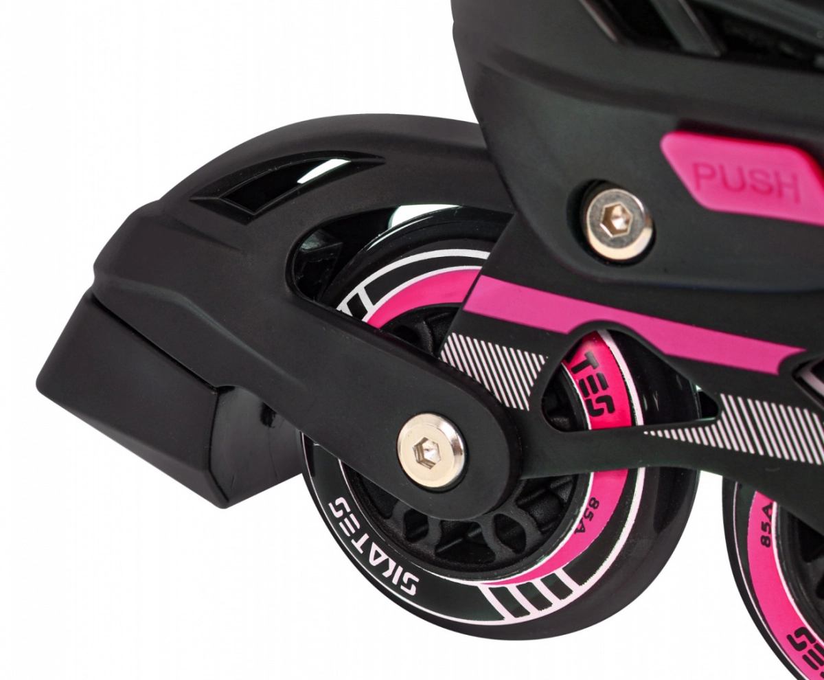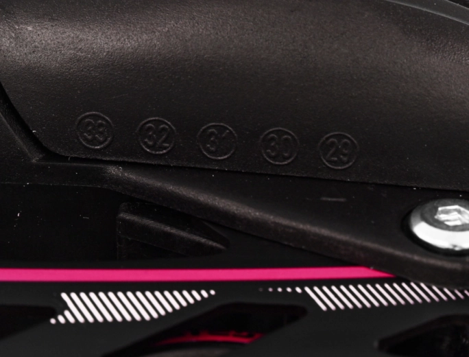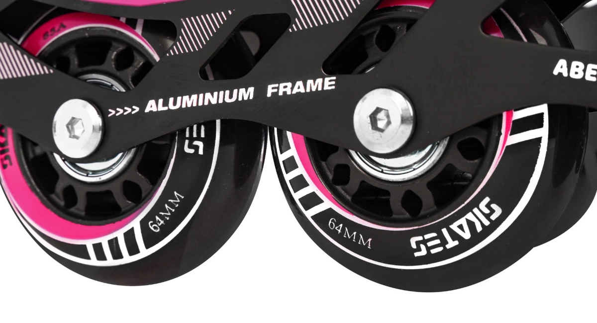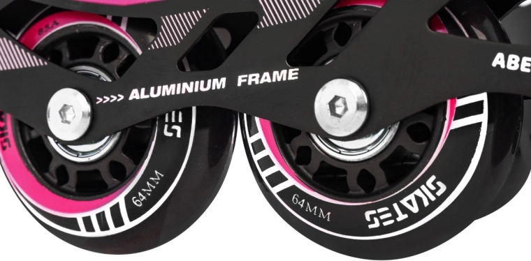 Komforten sikres af en formet indersål med blødt EVA-skum beklædt med et behageligt Velvet-materiale. Det tredobbelte lukkesystem – snørebånd, velcrorem og sikkerhedsspænde – holder foden fast og pålideligt. Aluminiumsunderstel til hjul, PU-hjul 64×24 mm med hårdhed 85A og ABEC 7-lejer giver en glat og stabil kørsel. Isklinger af rustfrit stål er lette at vedligeholde og giver fremragende glideevne.