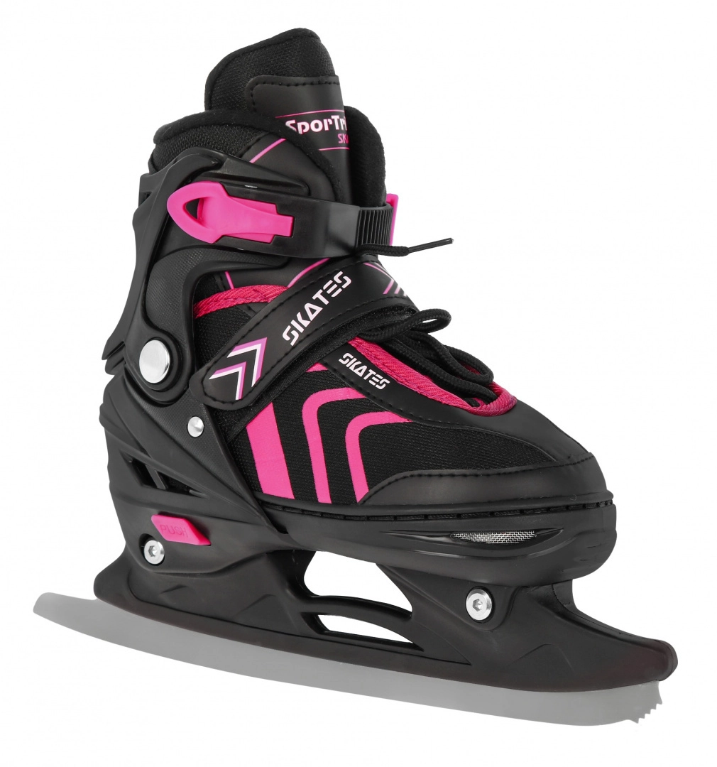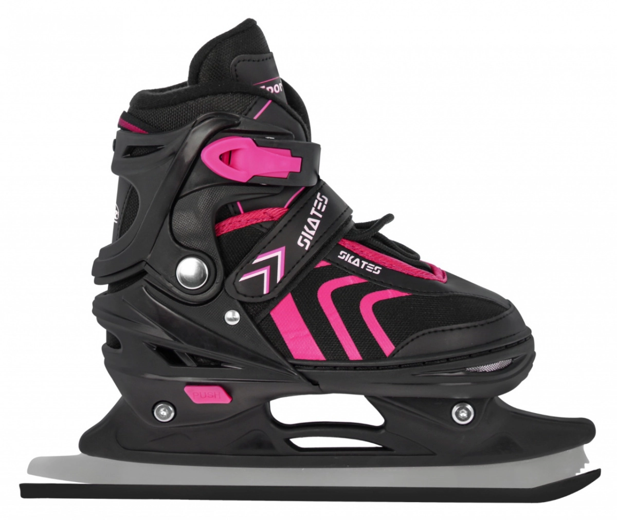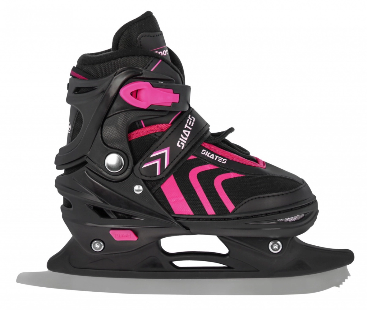Nem størrelsesindstilling med knap dækker fodlængde 16,5–20 cm, så skøjterne holder i flere sæsoner.