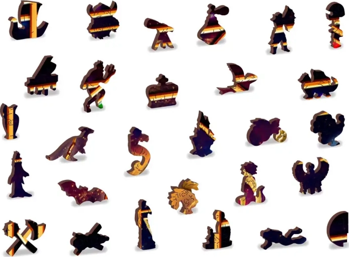 Laserudskåret træpuslespil fra WOODEN CITY med specialformede brikker er utroligt underholdende. En del af brikkerne er formet som dyr, bygninger eller genstande, hvor laserfremhævede detaljer forstærker den samlede effekt. Disse brikker kan stå selv som små figurer. At lægge et puslespil med forskelligt formede brikker er sværere og udgør en større udfordring end klassiske puslespil. Puslespillet er desuden dobbeltsidet, så du kan samle det både efter motivet (forside) og efter formen (bagside med mønster).