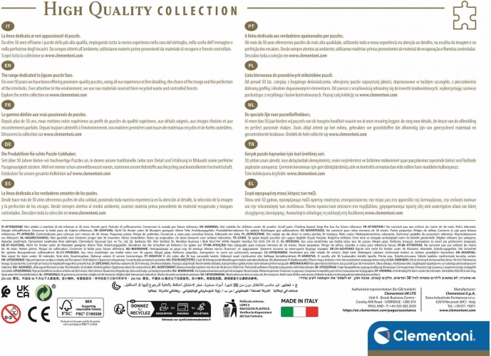 Dette premium-puslespil med 500 brikker byder på et imponerende bjergmotiv med en hytte ved foden af Matterhorn. Mærket CLEMENTONI er kendt for førsteklasses trykkvalitet, præcise udstansninger og elegant emballage, så både begyndere og øvede kan nyde processen.