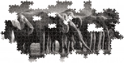 • Panoramaformat med et imponerende sort-hvidt motiv af en elefantflok