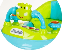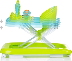 Gåstativet er let at folde sammen og samle, så du uden besvær kan opbevare det selv på mindre plads. 3 højdeindstillinger på sædet gør det muligt at tilpasse det til barnets aktuelle højde, mens forhjul, der kan dreje 360°, gør det nemt at bevæge sig rundt i rummet.