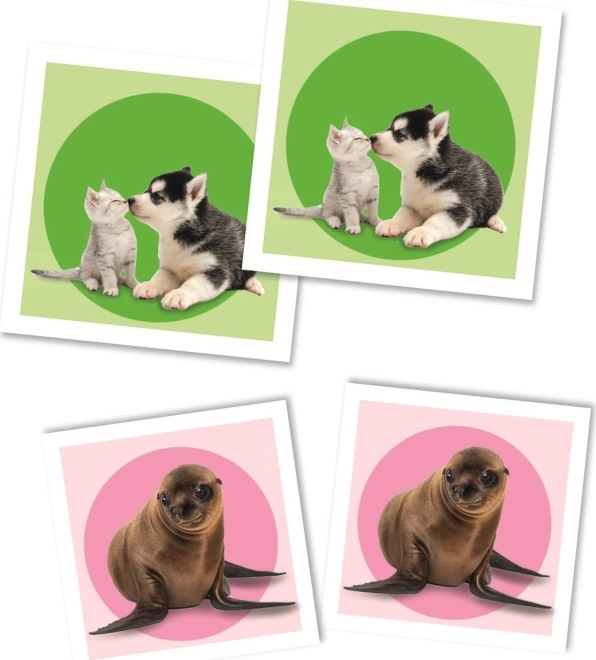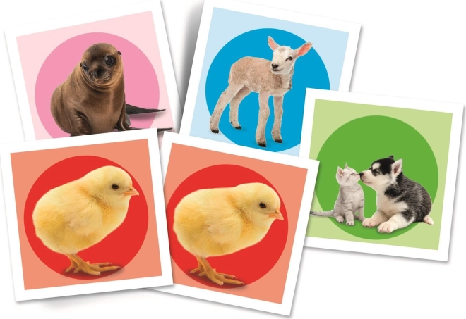 Farverige illustrationer af dyreunger fanger opmærksomheden og motiverer børn til gentagen leg, hvorved de naturligt træner hukommelse og koncentration.