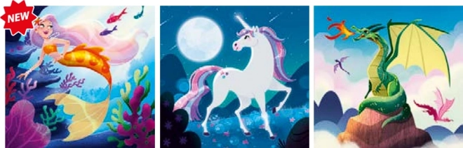 Clementoni-sættet bringer sjov puslespilsleg med motiv af fantastiske væsner, der stimulerer fantasi og kreativitet. Tre separate puslespil med samme antal brikker og mål er lette selv for mindre børn og styrker samtidig fokus og finmotorik.