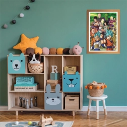 Det færdige billede måler cirka 27 × 38 cm, hvilket passer fint på et bord eller en legeunderlag. Et perfekt valg for små fans, der vil øve sig i at lægge puslespil og have kvalitetsunderholdning med deres yndlingshelte.
