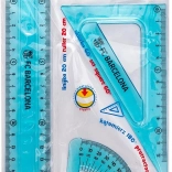 • Komplet udstyr til skolegeometri: lineal 20 cm, gradskive 180°, trekant 60°