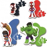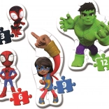Opdag fire formskårne puslespil til de mindste med helte fra MARVEL SPIDEY og hans fantastiske venner i varianterne 3, 6, 9 og 12 brikker. Store, 3 mm tykke skumbrikker er sikre og nemme at gribe, ideelle til den allerførste puslespilsleg. De hjælper børn med at udvikle finmotorik, øje–hånd-koordination og rumlig orientering – en sjov og lærerig legetøj i ét.