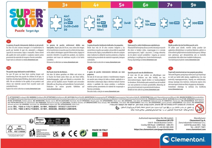 Saml en sød collage med hvalpe med CLEMENTONI SuperColor puslespil på 180 brikker. Takket være materialer af høj kvalitet og klare, strålende farver er det en fornøjelse at lægge. Ideelt til børn fra 7 år, udvikler manuelle færdigheder, tålmodighed og iagttagelsesevne. Det færdige puslespil måler ca. 48,5 × 33,5 cm.