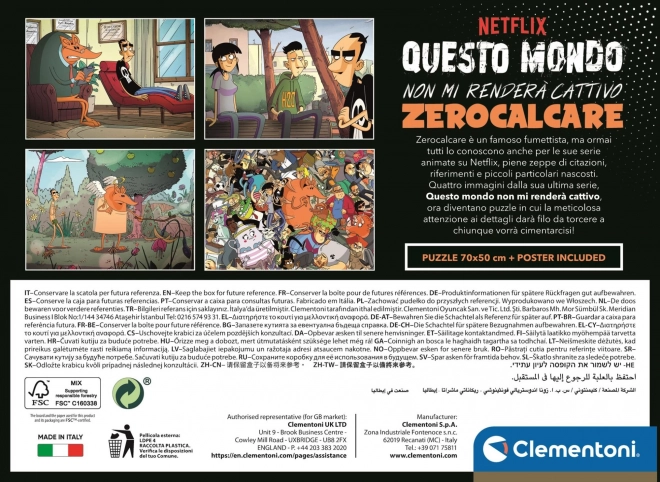 Nyd timevis af afslapning med kvalitetspuslespil fra CLEMENTONI inspireret af serien Netflix Den her verden får mig ikke af Zerocalcare. Puslespillet med 1000 brikker byder på et detaljeret motiv og danner et billede på 70 × 50 cm efter samling. I æsken finder du også en motivskabelon for lettere samling.
