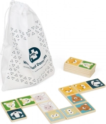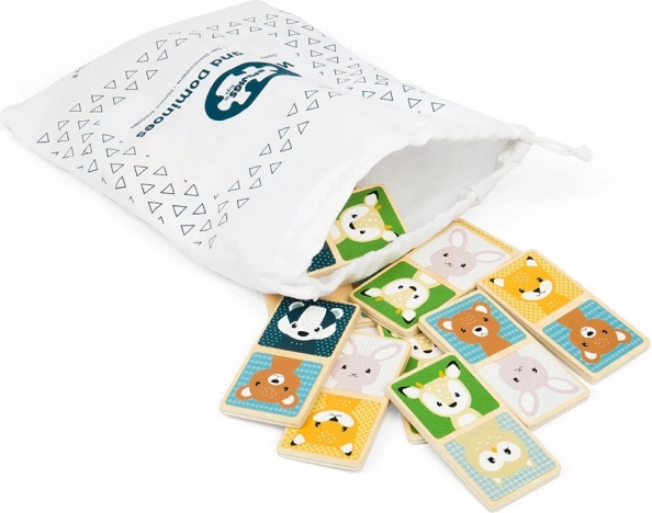 Tag børnene med ind i dyrenes verden med trædominoen Skovdyr. Hver af de 28 brikker er udsmykket med farverige billeder af dyr, og alle brikker passer bekvemt i små børnehænder.