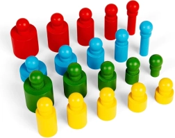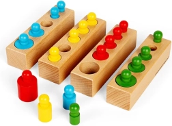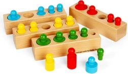 Uddannelsesindsætningsspil til genkendelse af former og farver, består af 24 klodser og 4 basisplader, som understøtter udvikling af finmotorik og hånd-øje-koordination.
