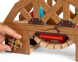 Broen er udstyret med et drejehjul, som gør det muligt at vippe broen og tilføje dynamik til dine togbanelege.