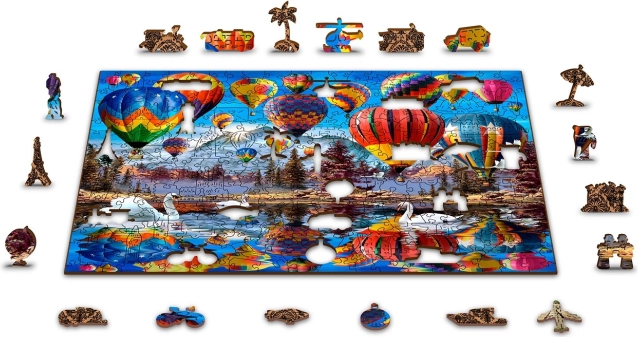 En elegant og underholdende udfordring for puslespilselskere. Træpuslespillet med motiv af luftballoner giver en unik oplevelse takket være 61 specialformede brikker som dyr, bygninger og genstande. Nogle kan endda stå som små figurer, hvilket gør puslespillet til en fantastisk gave og stilfuld dekoration.