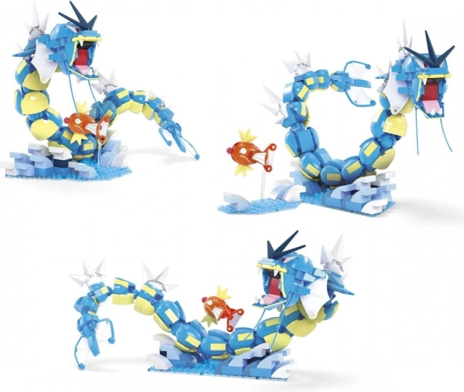 Byg Magikarp og Gyarados af 411 klodser. Gyarados 50 cm, 12 led, stander til udstilling. MEGA Pokémon byggesæt til børn fra 8 år.