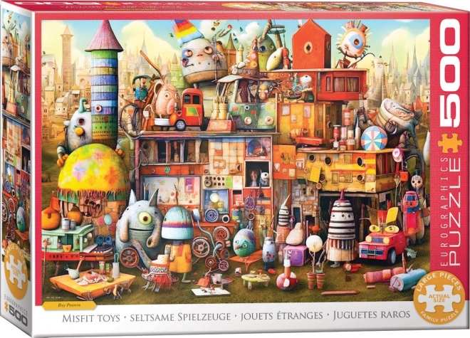 Billedet “Mislykkede legetøj” fra Eurographics tilbyder underholdende motiver og komfort ved lægningen takket være de ekstra store brikker. Perfekt til en rolig eftermiddag derhjemme, træning af tålmodighed og en fælles familieaktivitet.