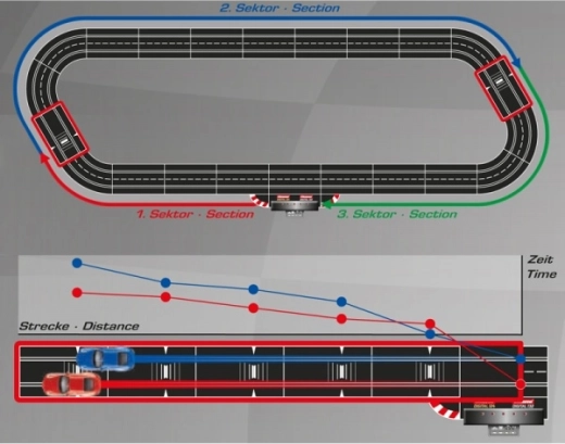 Udvid din CARRERA-racerbane med præcis mellemtidsmåling, og forvandl hver tur til et ægte løb. Check Lane-modulet gør det muligt at opdele banen i sektorer (op til 3) og sammenligne tider for de enkelte afsnit i DIGITAL 132- og DIGITAL 124-tilstand.