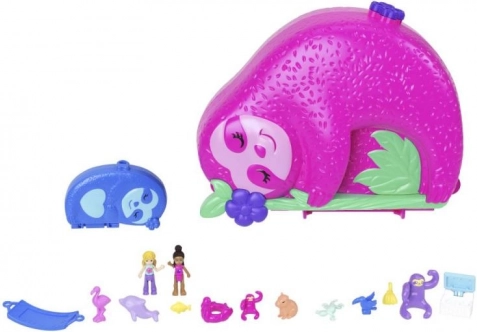 Dette sæt fra Polly Pocket tilbyder endeløse timers sjov med sit unikke design i form af et dovendyr. Hver del af sættet åbner op til et tropisk paradis, som rummer 2 mikrodukker og 12 forskellige tilbehør, inklusive 8 dyrefigurer. Børn kan køre ned ad zipline med en tukan, slappe af i en hængekøje eller plaske ved vandfaldet.