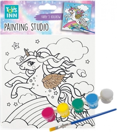 - Lærred 15×15 cm med fortryk (enhjørning og regnbue)