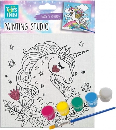 Oplev glæden ved at skabe med et malersæt med enhjørningemotiv. Indeholder lærred 15 × 15 cm, pensel og 5 farver (hvid, gul, lyserød, blå, grøn) – ideelt til børn og begyndere. Nemt at male, udvikler kreativiteten og sjov fritidsaktivitet i ét sæt.