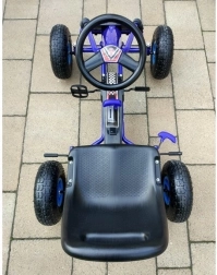 Den robuste træde-gokart til børn giver sikker og glidende kørsel takket være automatisk friløb frem og tilbage, kuglelejer i hjulene og skridsikre pedaler. Et lukket kædedæksel beskytter de små kørere, mens sportsrat og race-inspireret design stimulerer fantasien.
