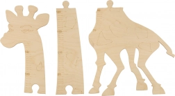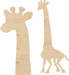 Denne træ-girafhøjdemåler forvandler hver højdemåling til et sjovt ritual. Takket være de fine indgraverede markeringer og den glatte, naturlige overflade passer den perfekt til børneværelser, vuggestuer og legeområder. Højdemåleren er designet til nem montering på væg og giver overskuelig registrering af børns vækst op til 125 cm.