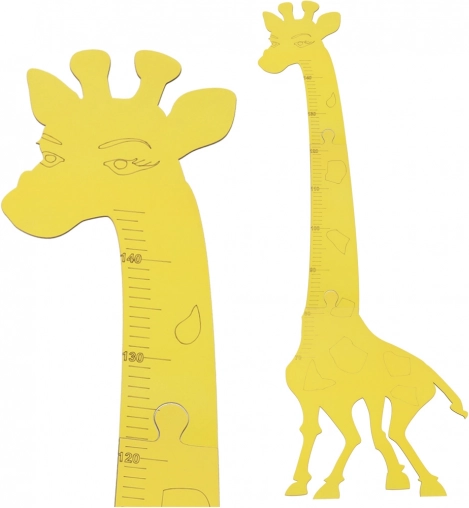 Den muntre vækstmåler i form af en giraf forvandler hver højdemåling til en sjov ritual. De tydelige skalaer gør det nemt at registrere hver centimeter, mens tavlen formet som en taleboble er perfekt til datoer, milepæle eller beskeder. Naturligt træ og det legende design passer perfekt ind i indretningen af et børneværelse.