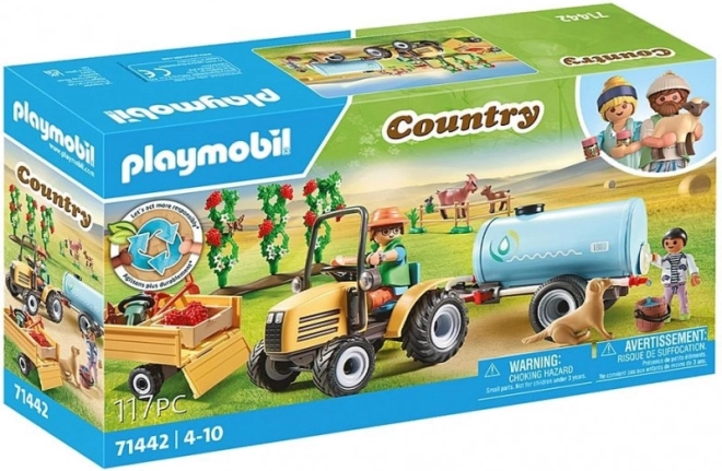 Opdag landbrugslivet med Playmobil Country Traktor med Vandtank! Dette sæt er perfekt til alle børn fra 4 år, som vil udforske sjove aktiviteter på landet. Legetøjet gør det muligt at skabe egne historier – fra at høste afgrøder til at transportere dem sikkert hjem.