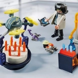 Dette PLAYMOBIL gavesæt inviterer børn ind i opfindelsernes fascinerende verden. Der fejres fødselsdag i laboratoriet – dronen ankommer med en kage, minirobotterne bærer muffins, og den store robot holder stolt en partyballon. Med det rige tilbehør og de realistiske funktioner kan børnene nemt skabe deres egne historier.