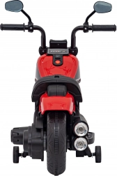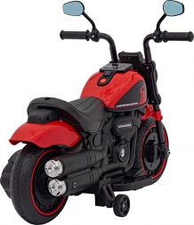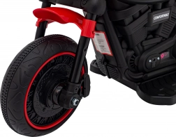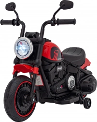 Den stilfulde børnemotorcykel chopper FASTER giver små førere masser af sjov og sikkerhed. Den har elektrisk motor på 20 W, 6V/4,5Ah batteri, LED-forlygter og et omfattende lydpanel (FM-radio, MP3, SD, Bluetooth, USB, AUX). Stabile plastikhjul og støttehjul sikrer nem kørsel frem og tilbage, mens det bløde sæde og realistiske motorstartlyde fuldender den autentiske oplevelse.