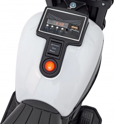 Musik og yndlingshistorier er altid lige ved hånden via lydpanelet med FM-radio og afspilning via MP3, Bluetooth, USB, SD eller AUX. Et komfortabelt sæde og den lette konstruktion giver nem betjening og enkel transport.