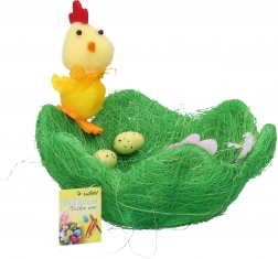 Stilfuld dekorationsrede i naturlig grøn farve med målene 19 × 19 × 8 cm, ideel til forårs- og påskearrangementer, bryllupsdekorationer og helårsudsmykning. Giver interiøret et naturligt udtryk, byder på alsidig anvendelse, og takket være de kompakte mål passer den på bordet, hylden og i vitrinen.